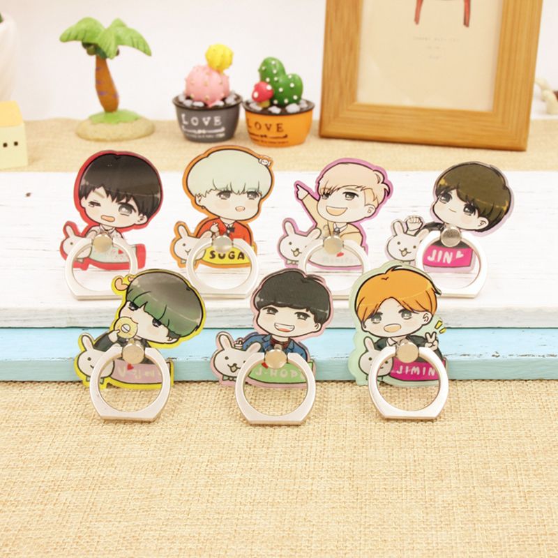 Kpop Bts Bangtan Boys álbum De Dibujos Animados V Suga Jungkook Jimin Jin Anillos Dedo Soporte Titular Anillos Caso Zhk